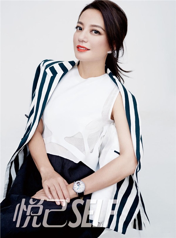 赵薇展现从容淡定的优雅姿态,暖色调光影勾勒其面部轮廓